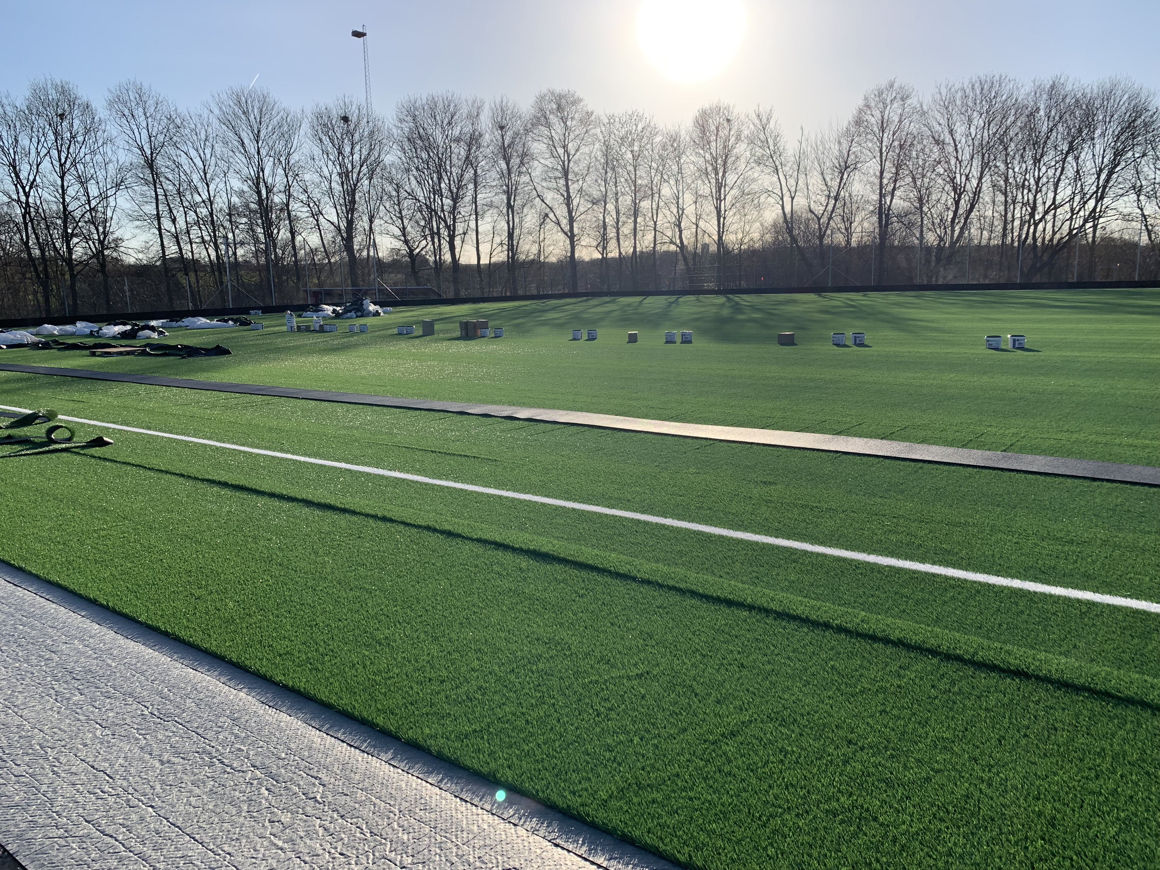 Så er halvdelen af banen beklædt med kunstgræs:-)
